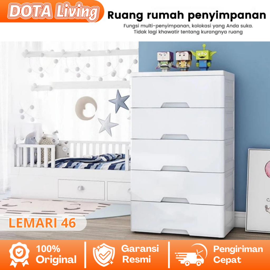 DOTA Living Lemari Pakaian Plastik 48CM Putih Laci premium Storage Cabinet Plastik tas tertutup Susun lemari plastik jumbo