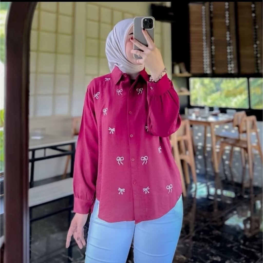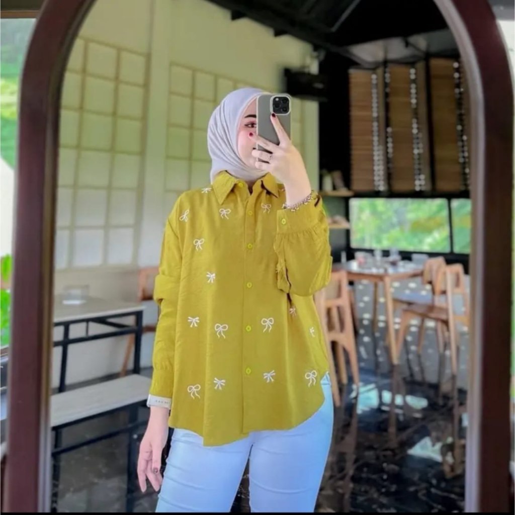 Blouse Wanita motif Bordir Pita / Kemeja Wanita PURE linen / Atasan Blouse Bordir Korean Style