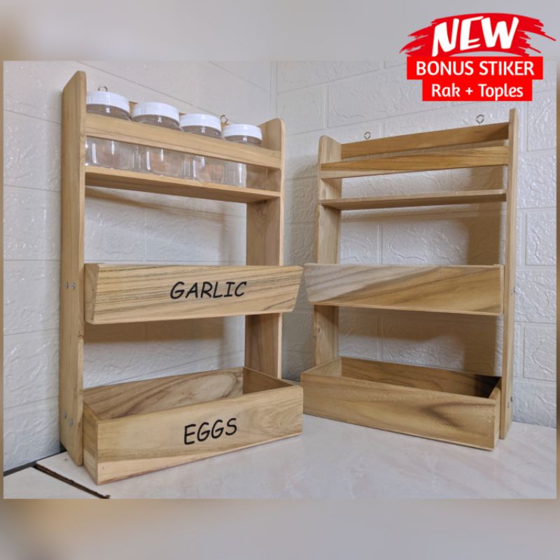 Tempat Bumbu Dapur Kombinasi Rak Bawang Susun Kayu Jati Asli Kekinian