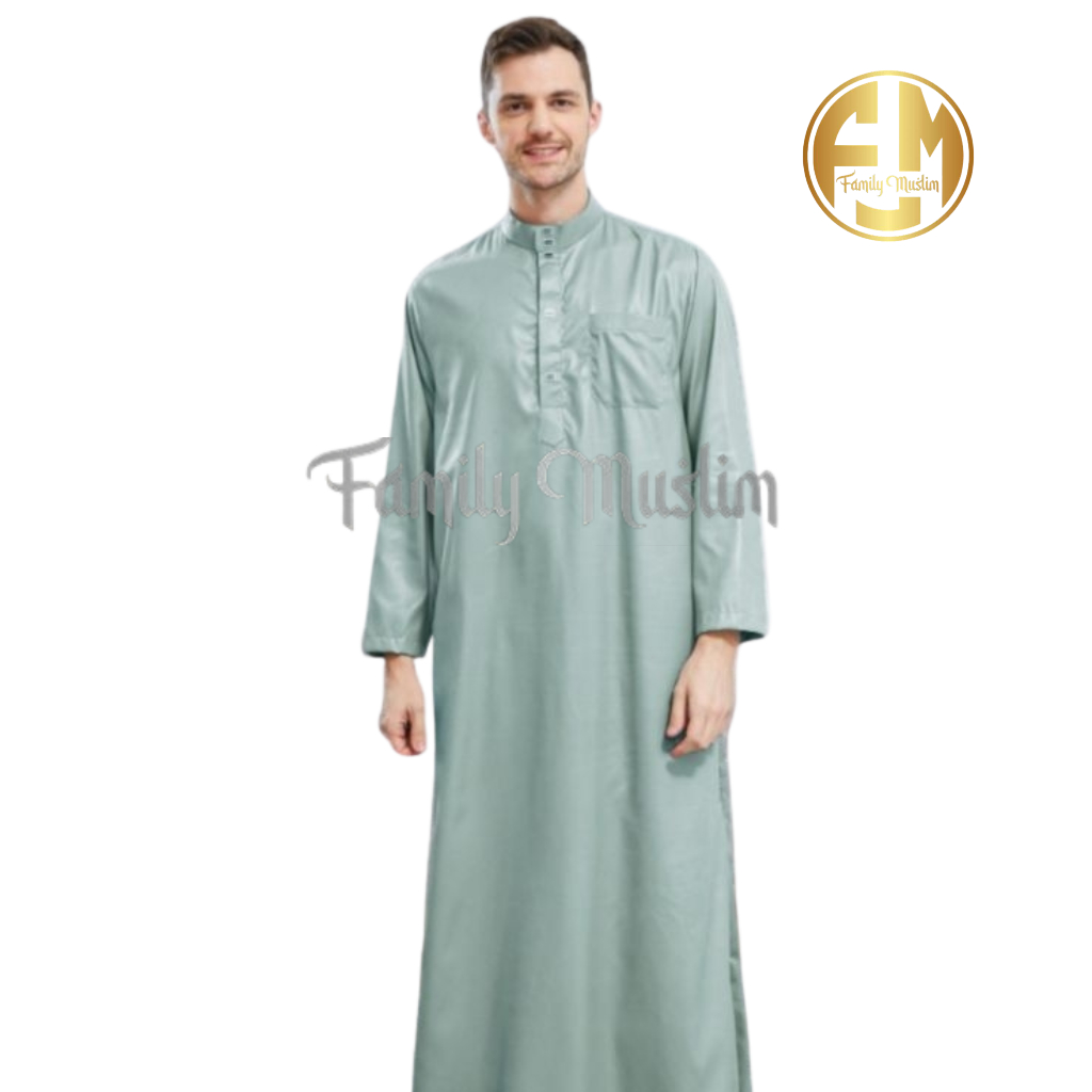 Family Muslim - Jubah Gamis Pria Dewasa Lengan Panjang Slimfit Dubai Hiitam