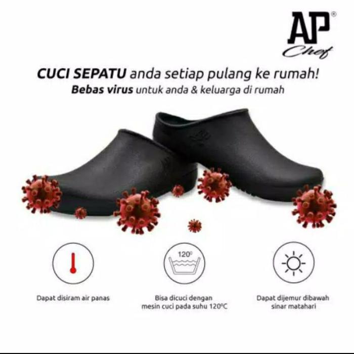 AP CHEF HITAM & PUTIH SIZE 38 - 45 - SEPATU AP CHEF - SEPATU KOKI - SEPATU AP CHEF - HITAM, 38