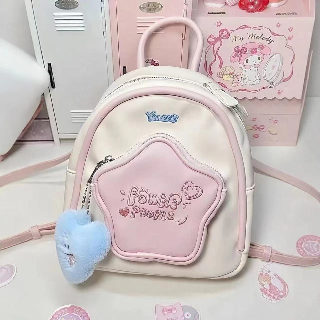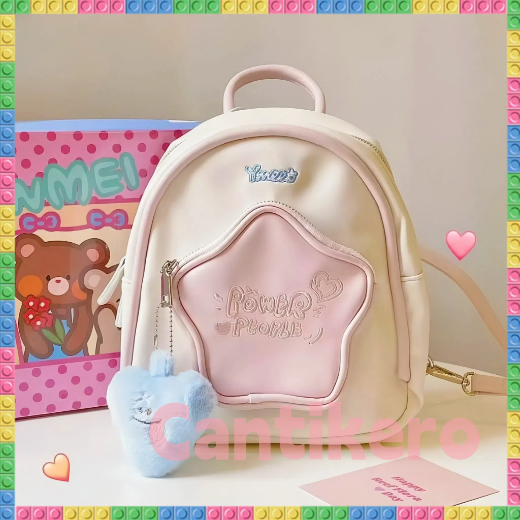 Cantikero Lucu Tas Ransel Bahan Pu Bintang Pink White Tas Sekolah Ransel Kecil Mini Kulit Backpack Fashion Korea Bag Kul