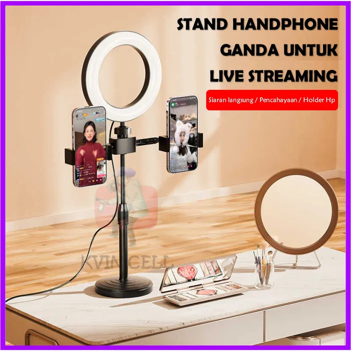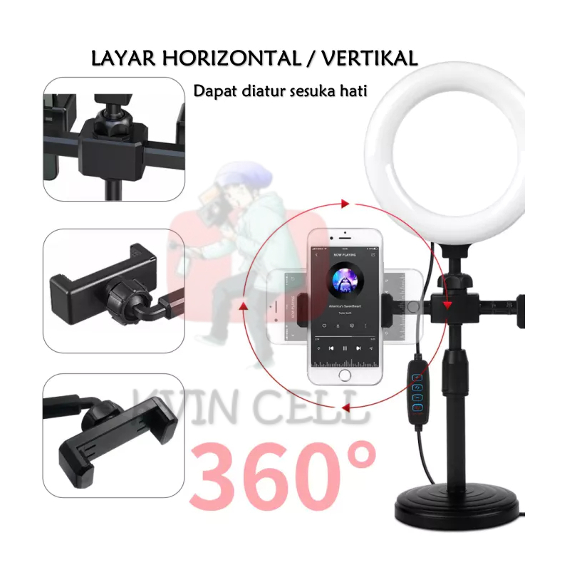 Ring light 16cm + Tripod Free 2 Holder Hp Ring light Tripod Mini Stand Holder Handphone Hp Live Streaming Selfie LED Mak