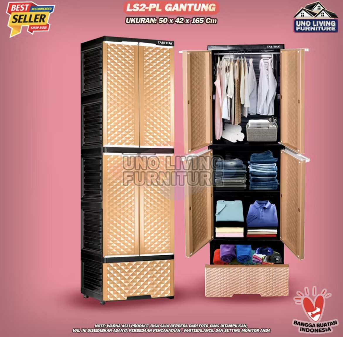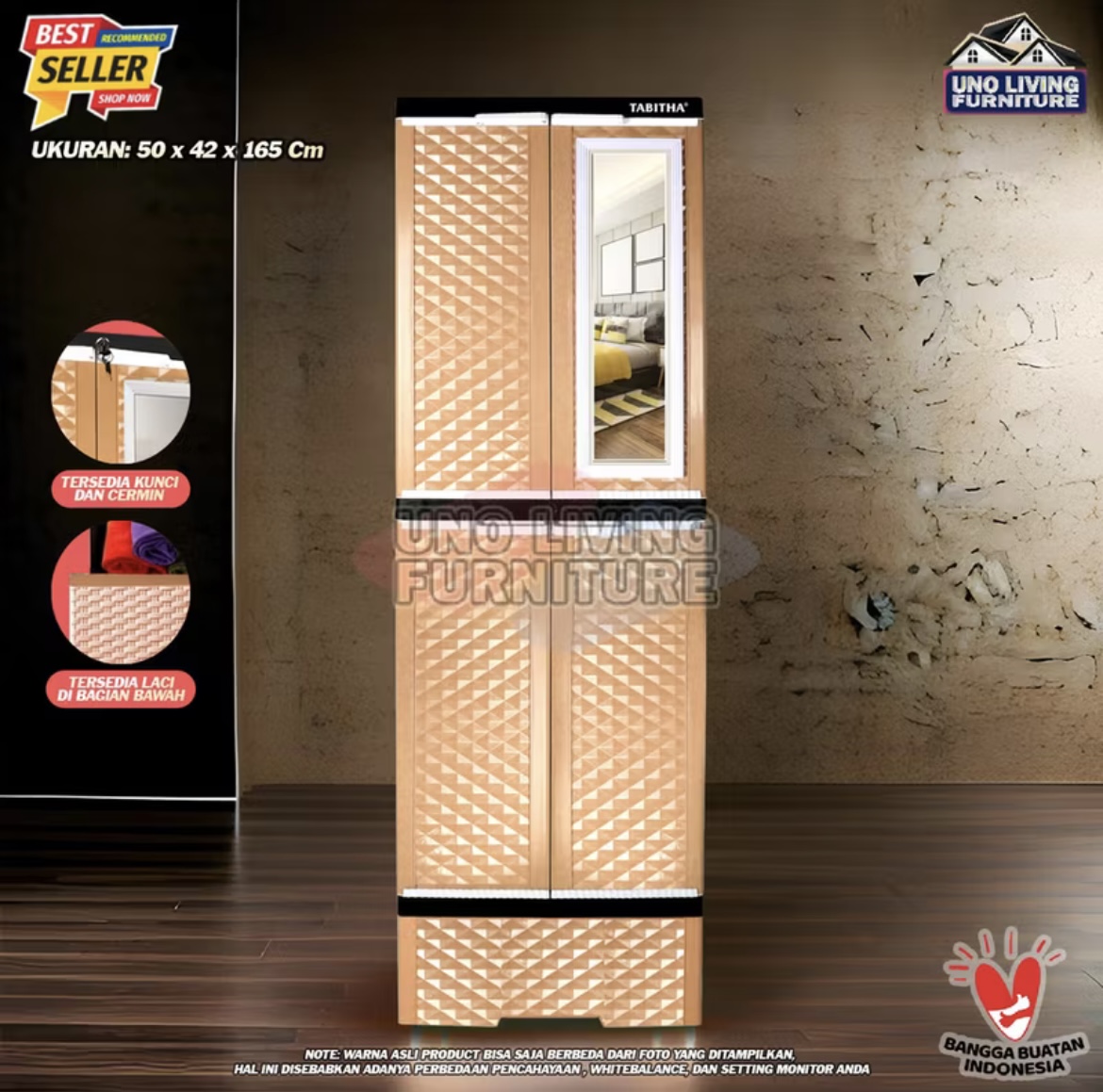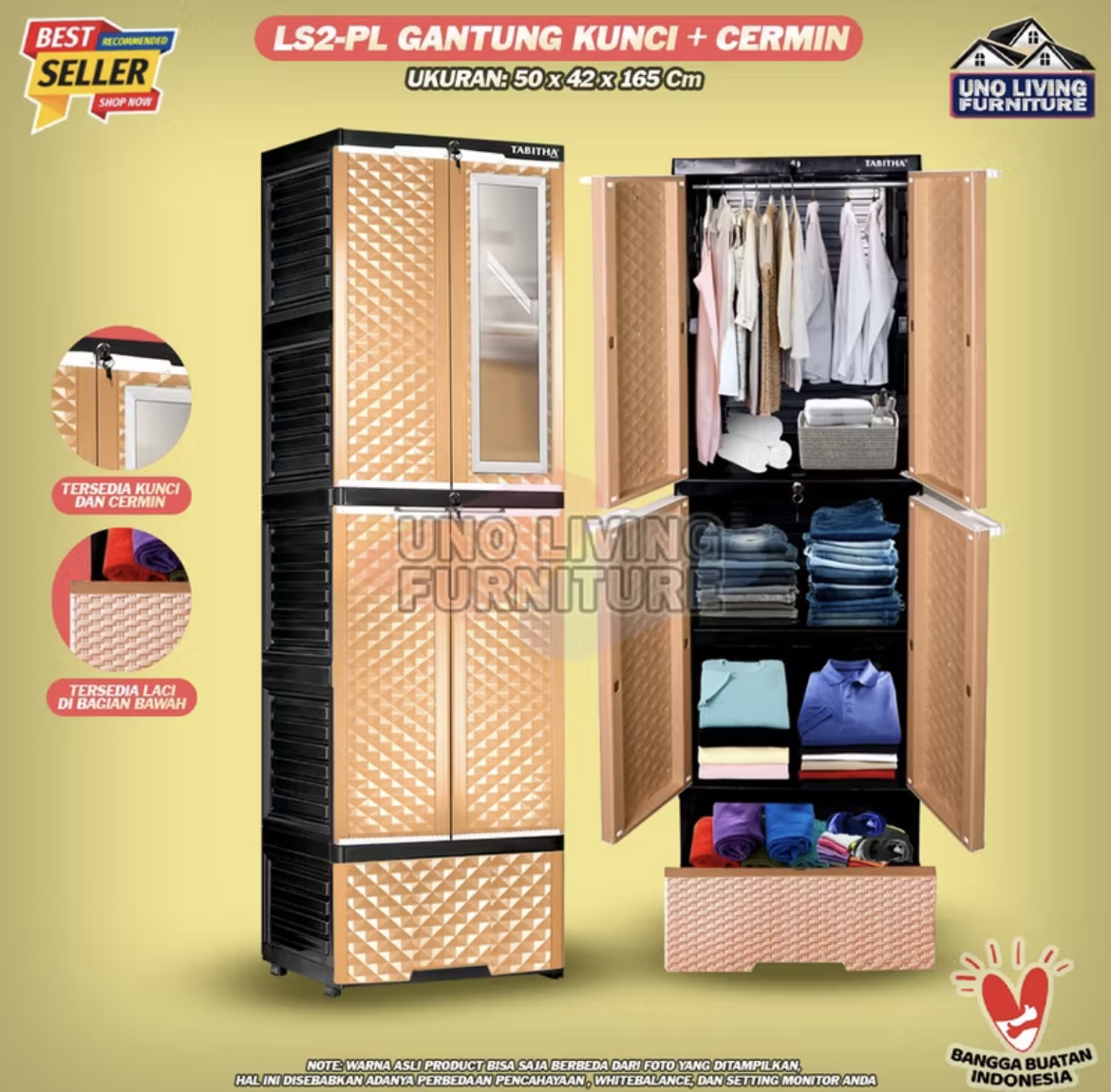 LEMARI PAKAIAN PLASTIK GANTUNG DAN LACI LEMARI PINTU RAK SERBAGUNA LS2PL TABITHA DENGAN CERMIN