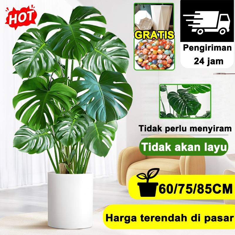 Tanaman hias plastik DAUN KELADI AGLONEMA ARTIFICIAL DAUN PLASTIK BUNGA POT HIAS DEKORATIF DAUN MONSTERA PLASTIK POHON H