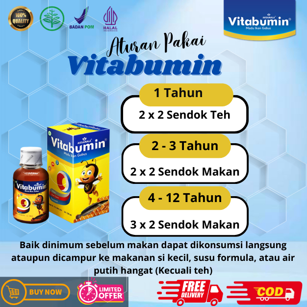 5 Botol Vitabumin Madu 130ml Nutrisi Tumbuh Kembang dan Penambah Nafsu Makan