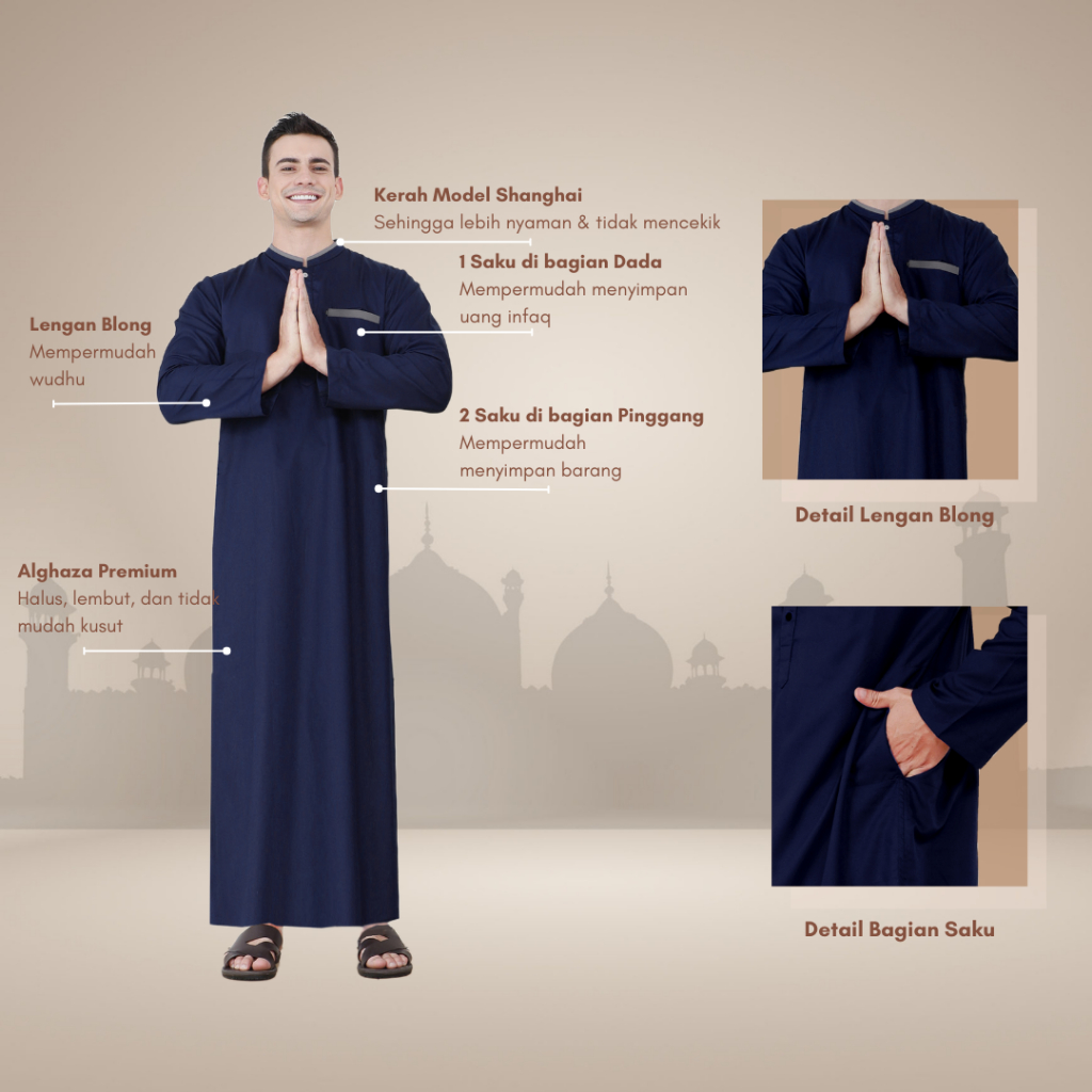 Alghaza Mubarak | Jubah Slim Fit Dewasa Cowok Lengan Panjang | Gamis Arofah Lengan Blong | Reguler Fit