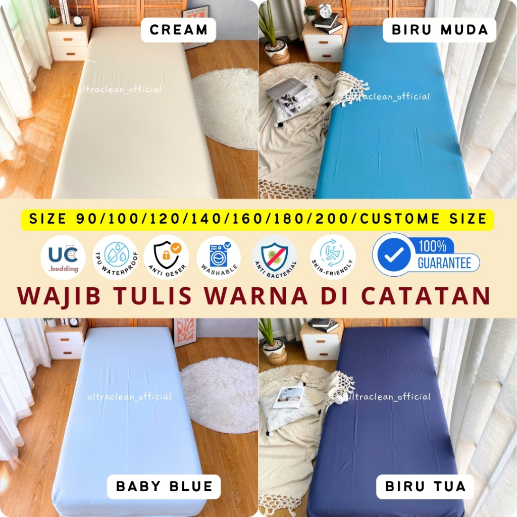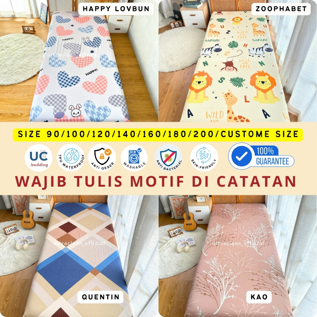 SPREI WATERPROOF + KARET ANTI GESER ukuran 200x200 180x200 160x200 140x200 120x200 100x200 90x200