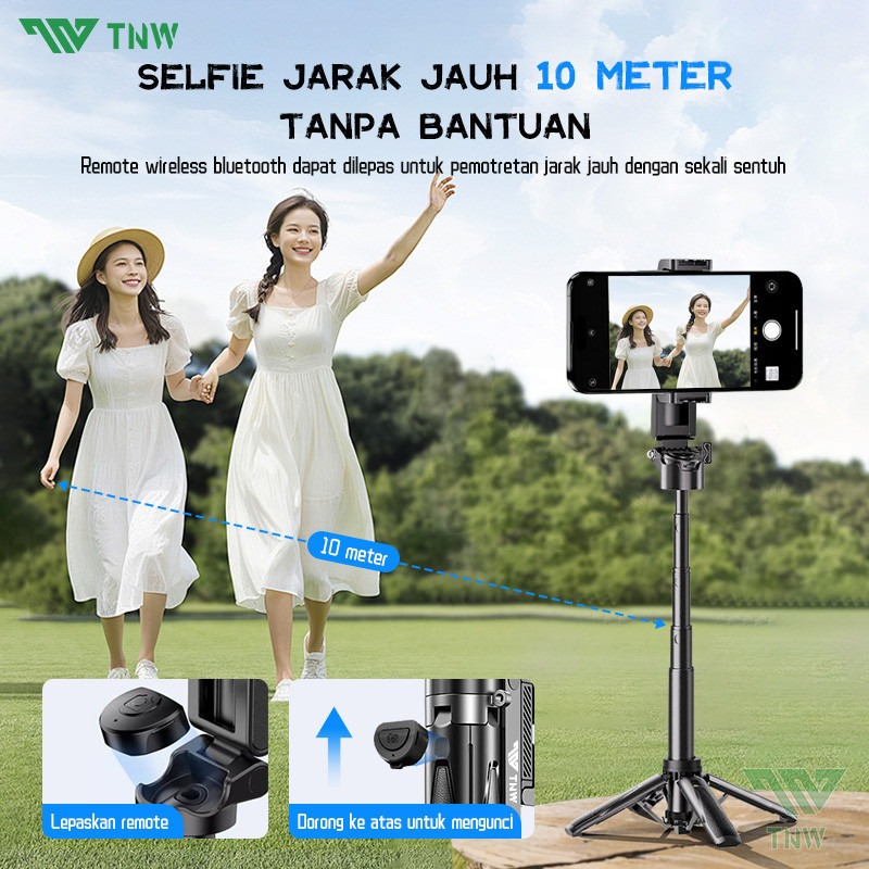 FLASH SALE TNW T26 Mini Selfie Stick Extendable Grip Tripod Bluetooth Remote ControlTongsis Tripod Dan Lampu