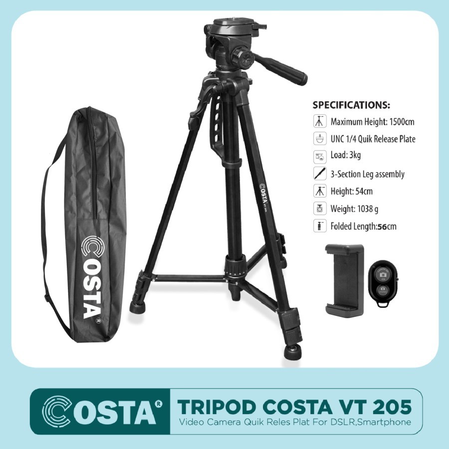 FLASH SALE COSTA VT 205 Tripod Video Camera Quik Reles Plat For DSLR, Completed