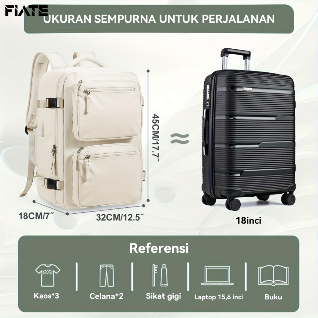 Flate Backpack Tas Ransel Travel Backpack Wanita Waterproof Tas Laptop 16 Inch 35-55L Pria Sekolah