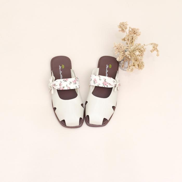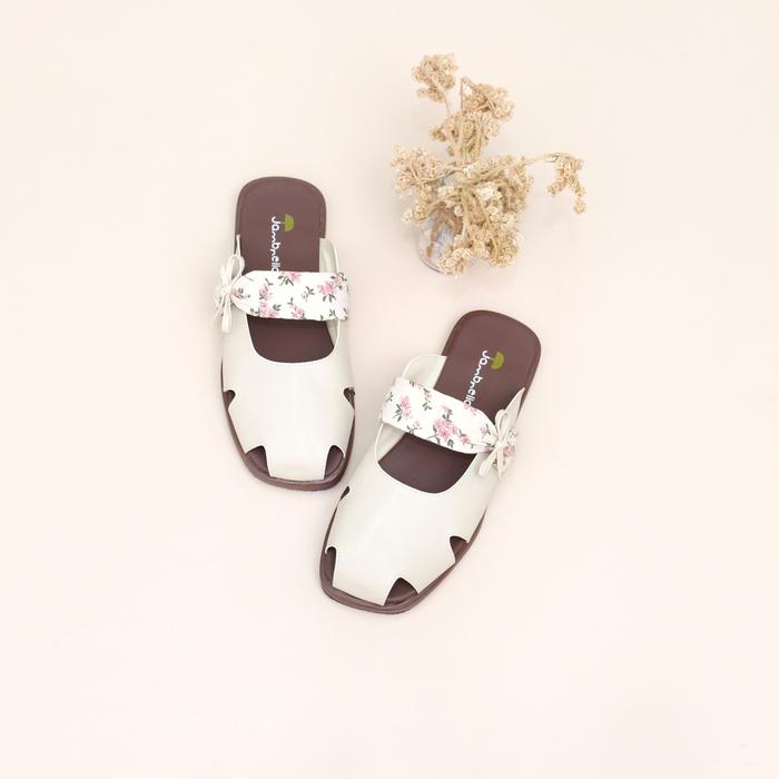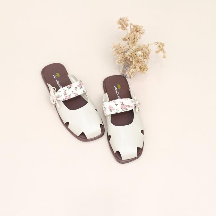 Sandal Flat Wanita Jambrella Melody Cream Sandal Slop Cewek Trendy - Cream, 36