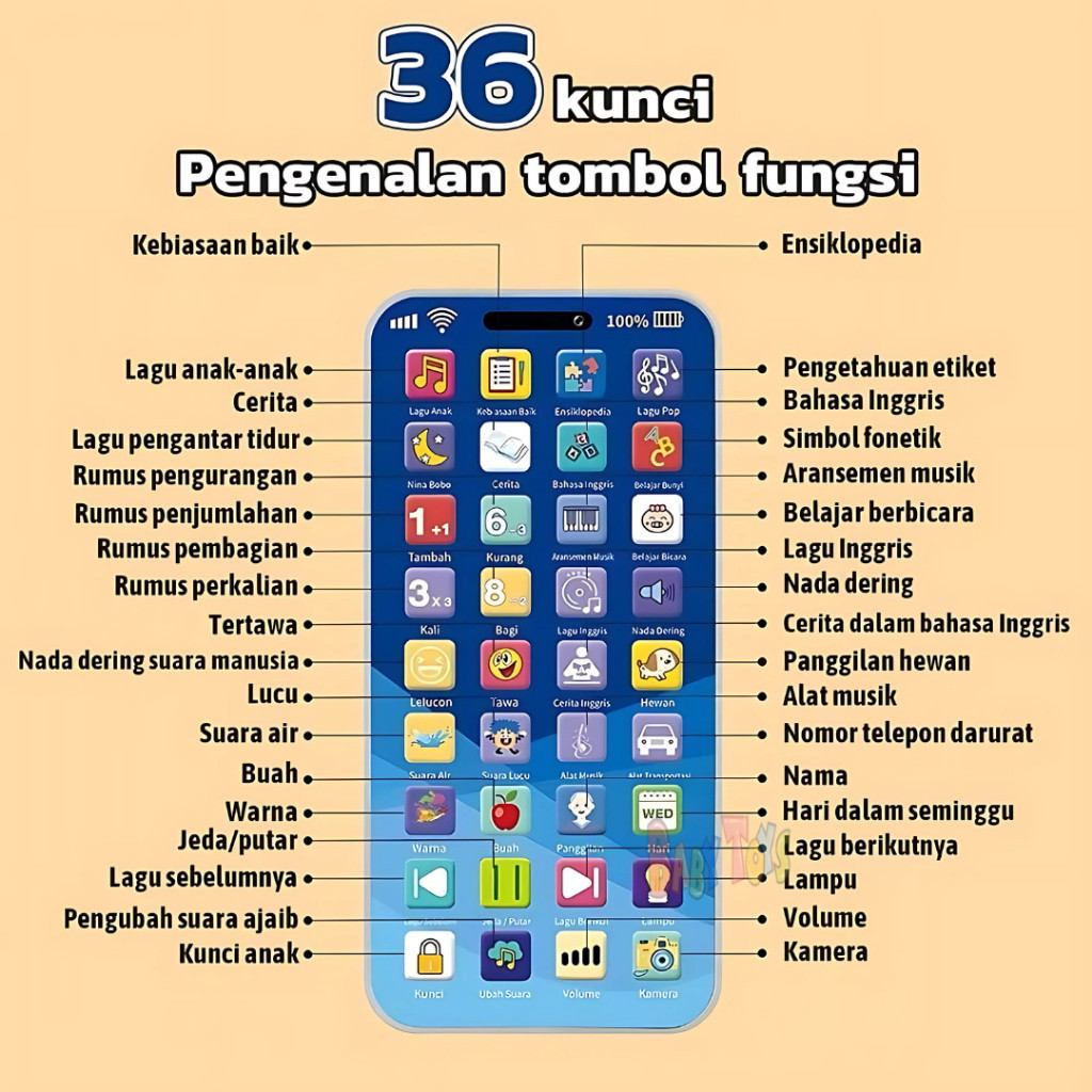 mainan HP Lampu / mainan hp 36 Tombol / telpon mainan / mainan edukasi / Mainan Musik Telepon / Mainan Handphone Edukasi Anak