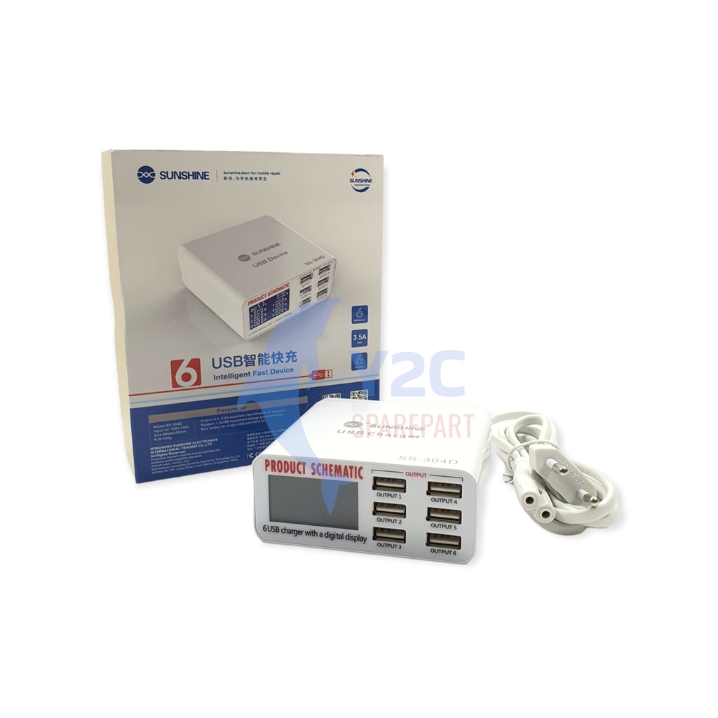 ADAPTOR SMART CHARGER SUNSHINE SS-304D DIGITAL 6PORT USB PRODUCT SCHEMATIC / ALAT SERVIS SERVICE HP LENGKAP TERLENGKAP T