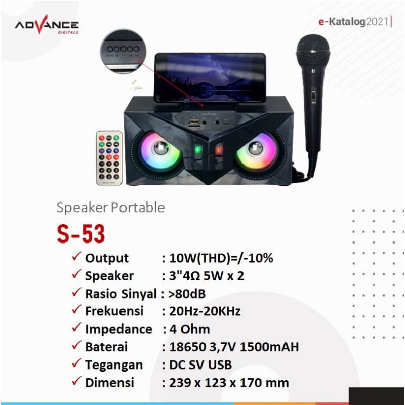 Speaker Bluetooth Advance S53 Free Mic Karaoke/Salon Aktif Radio Fm Box Music/Speaker Aktif Portable