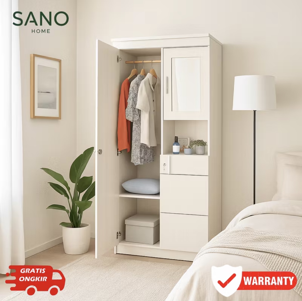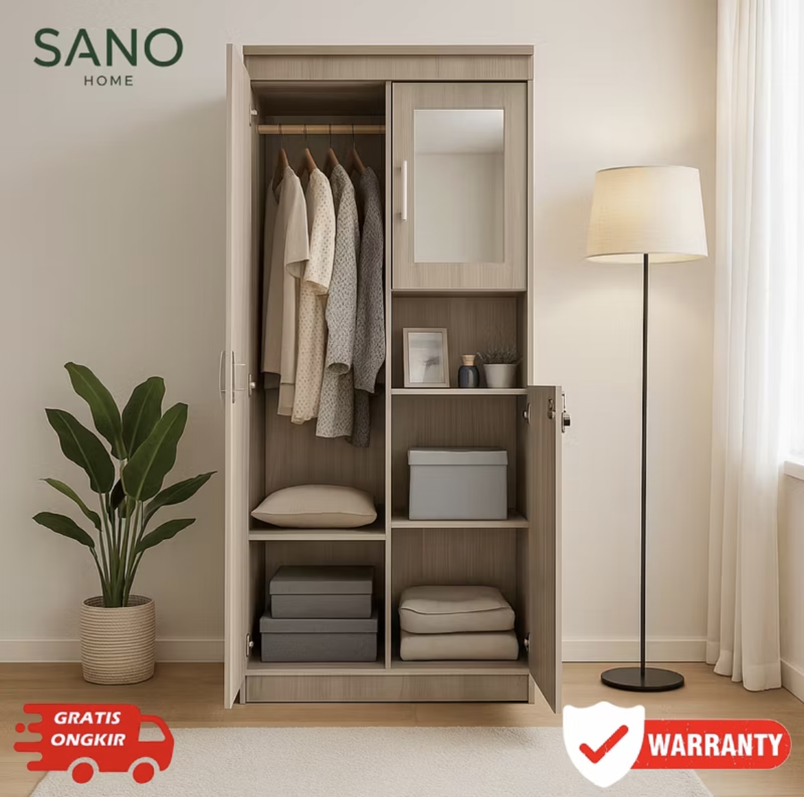 LEMARI PAKAIAN DUA PINTU MINIMALIS MURAH SANO HOME - LB 02