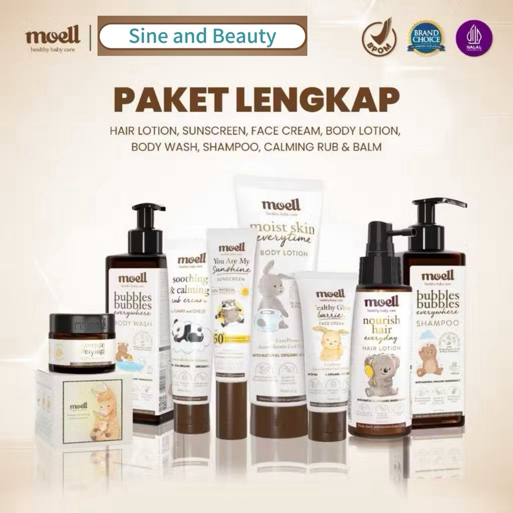 Moell Sunscreen / Face Cream / Hair Lotion / Body Lotion / Shampoo / Body Wash / Calming Rub Cream Bisa Instan Lokasi Ba