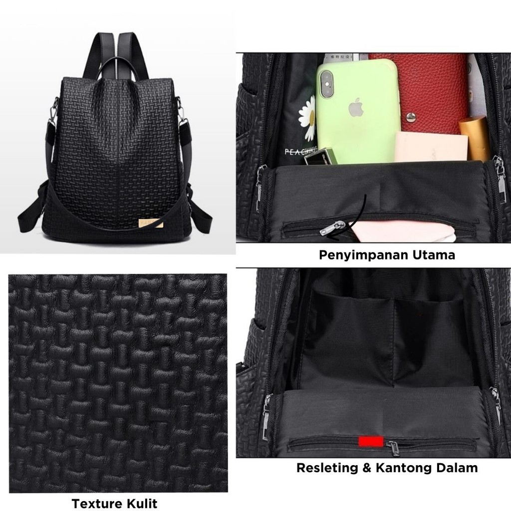 Hanami Tas Ransel Wanita Kulit Premium Korea Cewek Sekolah Gendong Croco Hitam Maelis Kuliah Ta879B5