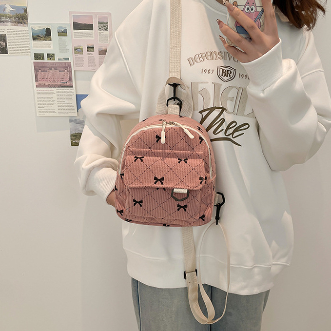 Hayden Isla Bag Ransel Mini Motif Love Gaya Korea Gambar Hati Backpack Korduroi Tas Jalan Jalan Les - Hyb28E