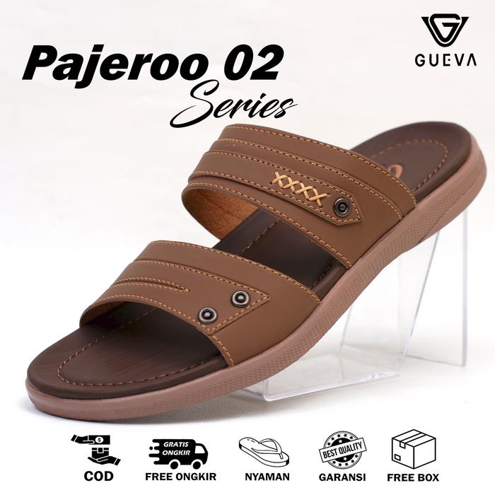 Gueva Sendal Pria Pajeroo 02 Series Sandal Selop Kasual Indoor Outdoor Size 39-43 Bisa Anti Slip Anti Licin - Hitam, 38