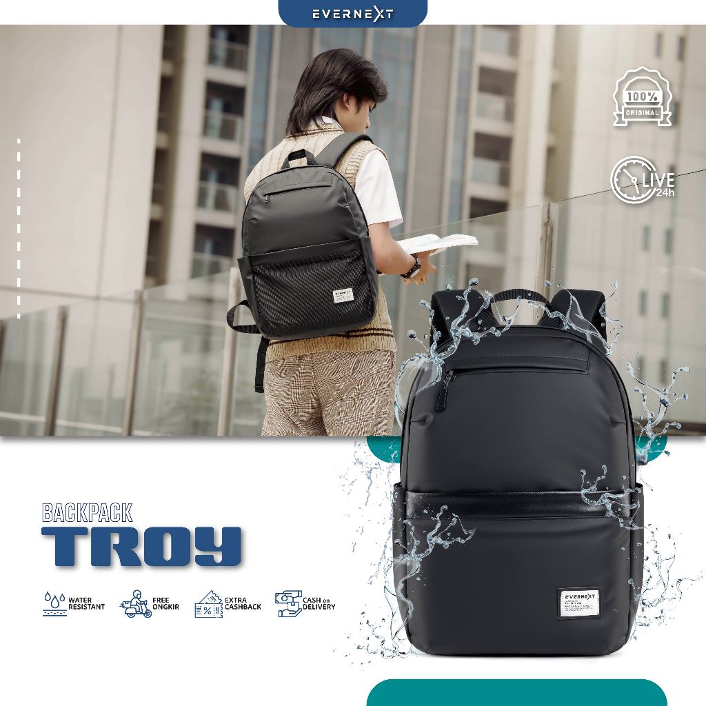 Evernext - Tas Ransel Pria Waterproof Tas Sekolah Pria Wanita Anti Air Backpack Laptop Troy