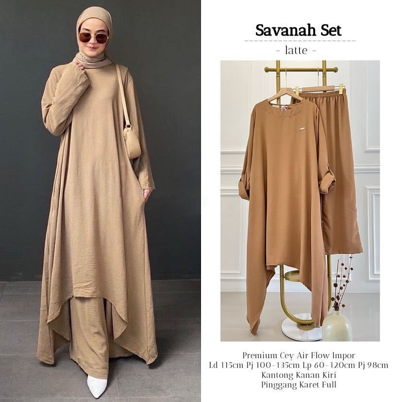 SRF Savanah Set 2in1 Setelan Wanita Terbaru Bahan Crinkle Baju One Set Kekinian Long Tunik & Celana
