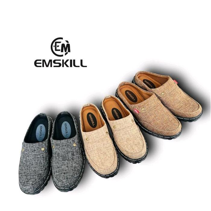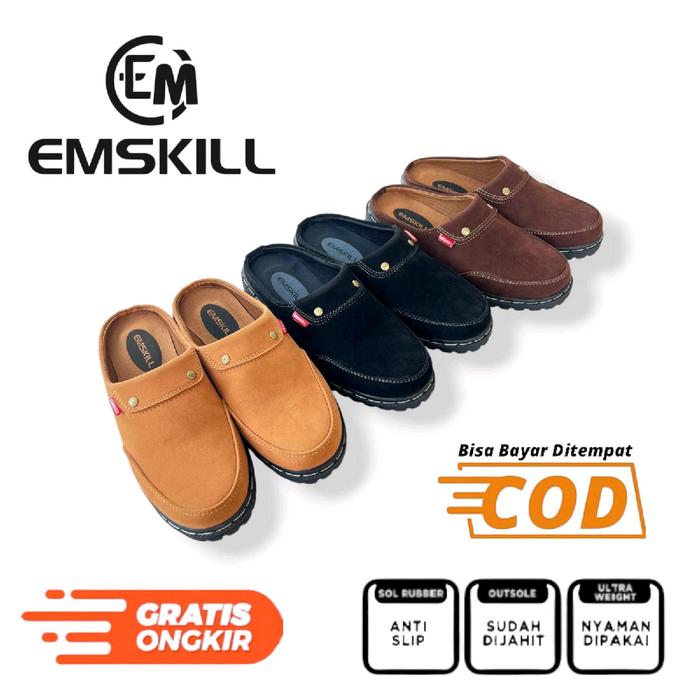 EMSKILL-SANDAL SEPATU BUSTONG COWOK SANDAL SEPATU TUTONG SLOP PRIA TERBARU KARET SHOES SELOP KASUAL - SL SUEDE HITAM, 39