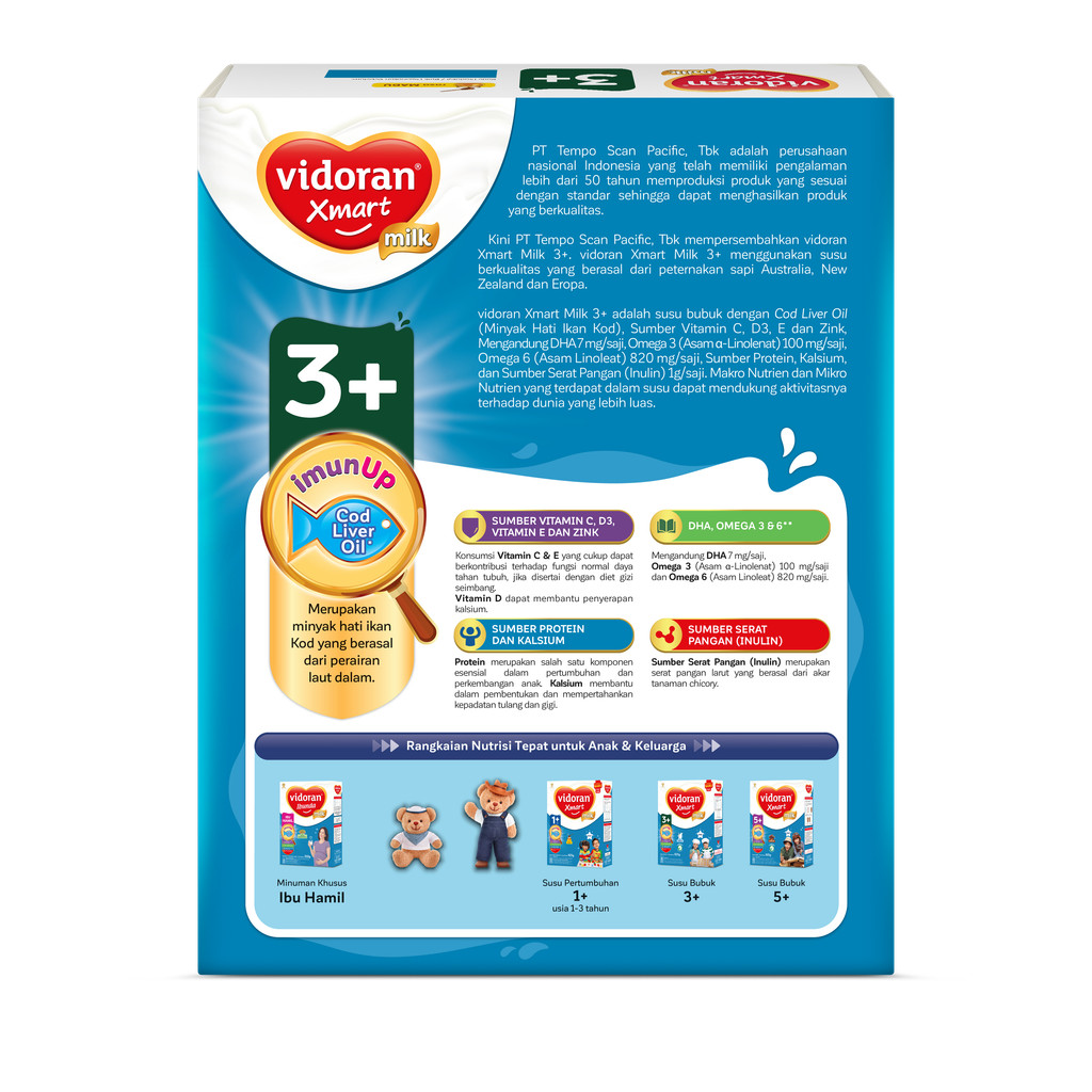 Vidoran Xmart 3+ Imun Up Susu Formula Madu 800 G - Exp : 01.2027