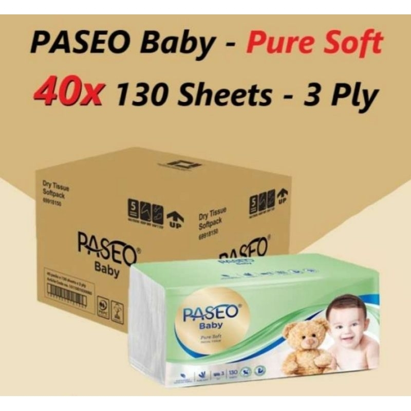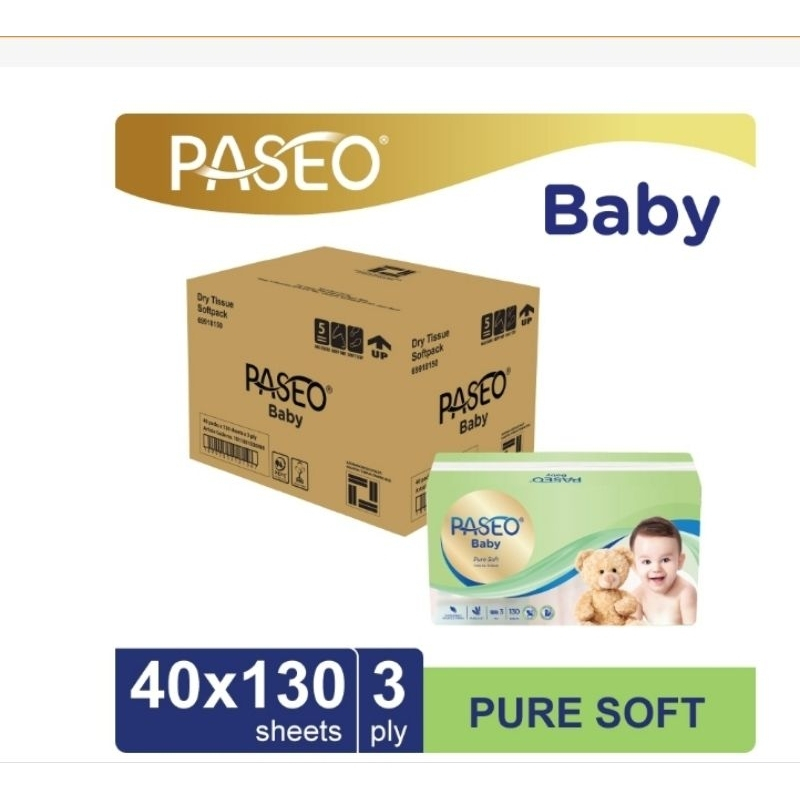 (40 Pack) Paseo Baby Pure Soft 130s Facial Tissue Bayi Puresoft Per DUS