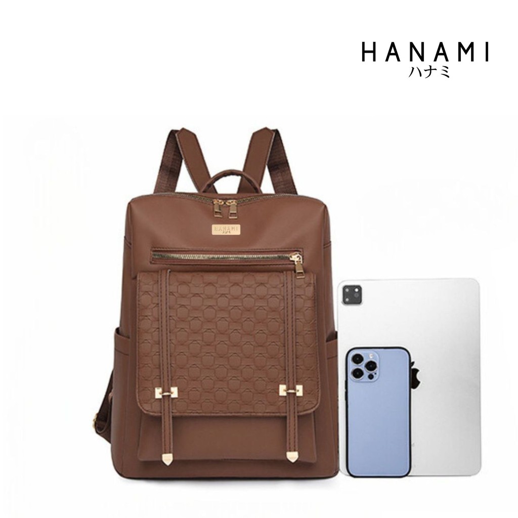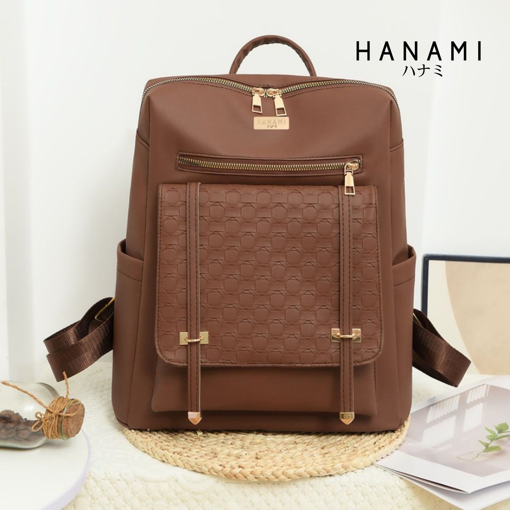 Hanami Tas Ransel Wanita Cokelat Hikaru Backpack Kulit Premium Branded Sekolah Kantor Keren Ta1033B7