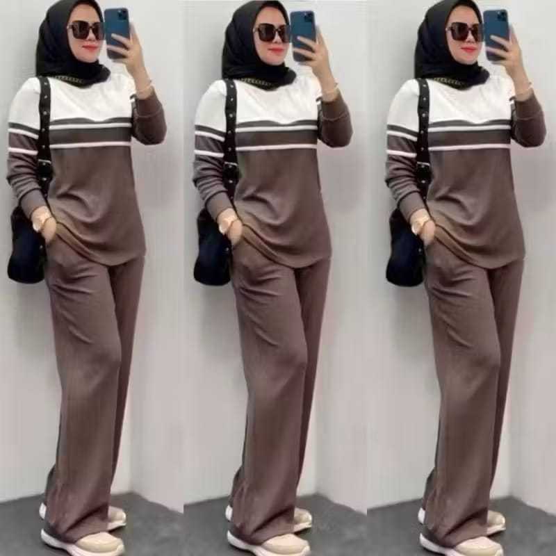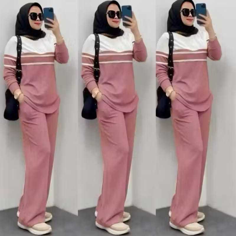 SETELAN WANITA CRINGKLE JUMBO KEKINIAN APOLO SET TERBARU BAJU SETELAN POLOS KOMBINASI LENGAN PANJANG