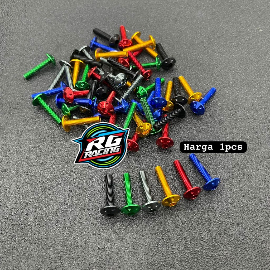 racinggrup baut visor nmax,aerox,lexi aluminium model bintik m5x25 drat 8 panjang 2,5cm kunci L harga satuan/1biji