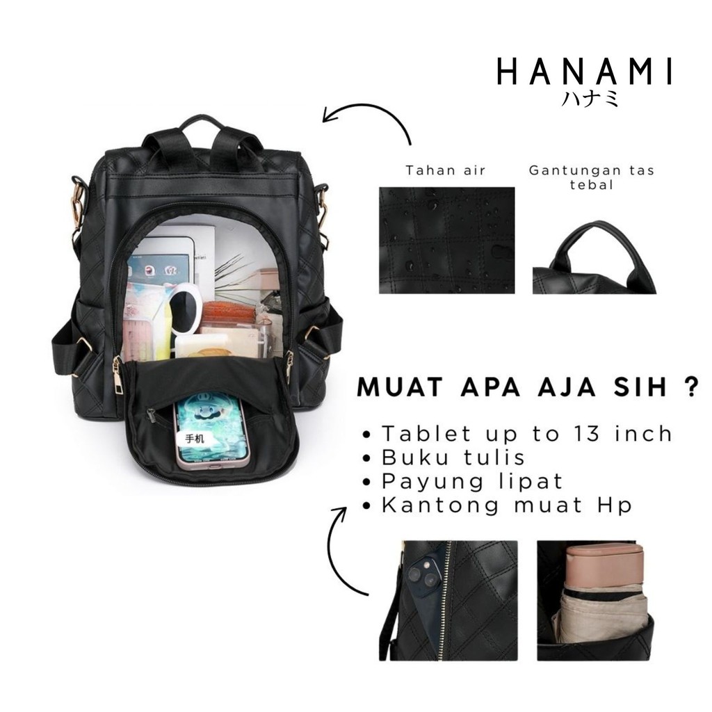 Hanami Tas Ransel Wanita Ta1046B5 Cadenza Hitam Elagan Kulit Fashion Murah Kekinian Terbaru