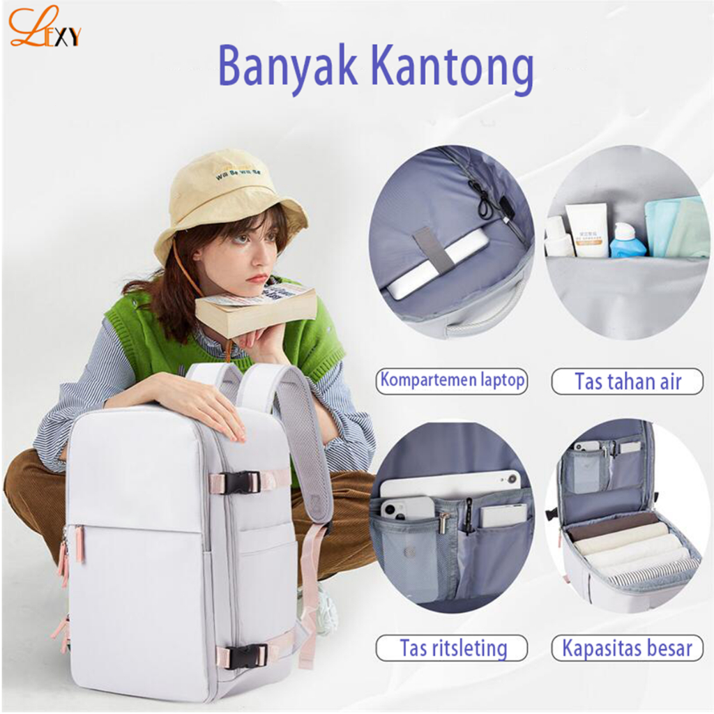 Lexy Tas Ransel Traveling Wanita Tahan Air Kapasitas Besar Outdoors Multifungs Tas Sekolah Wanita