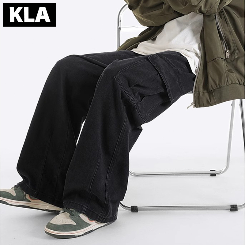 KAin LN-Asia Celana cargo jeans celana pria celana jins gelap celana jeans longgar pria celana korean style pria kulot j