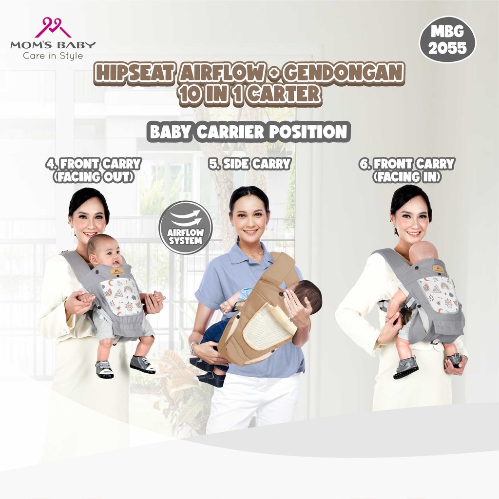 Mom's Baby Gendongan Bayi Hipseat Airflow Dan Gendongan 10 In 1 Carter