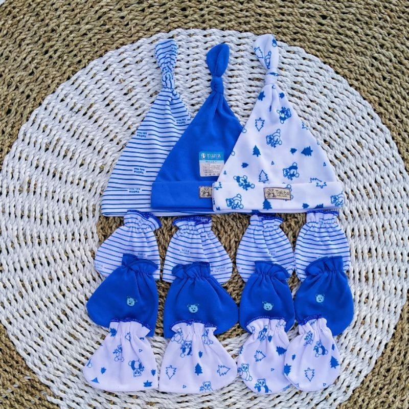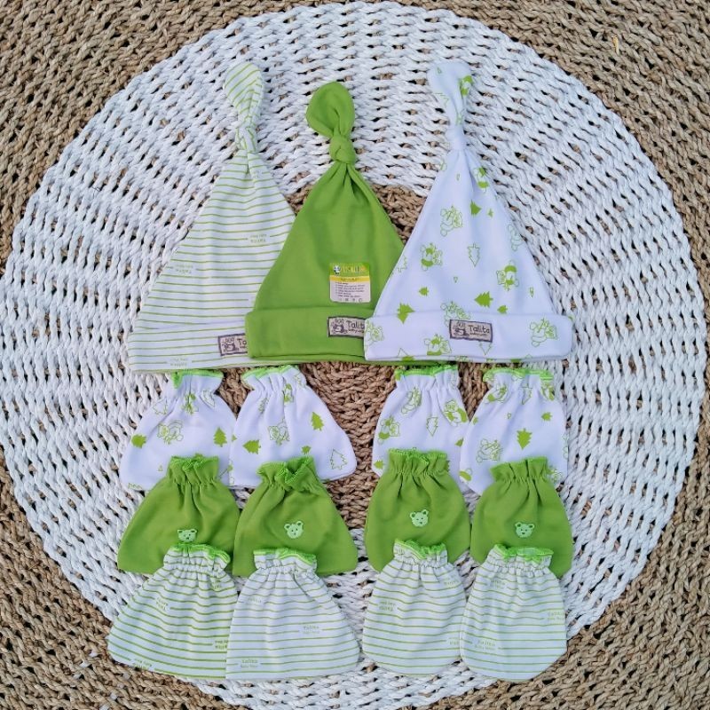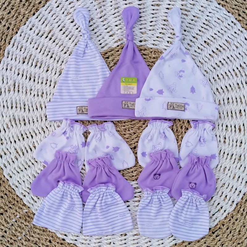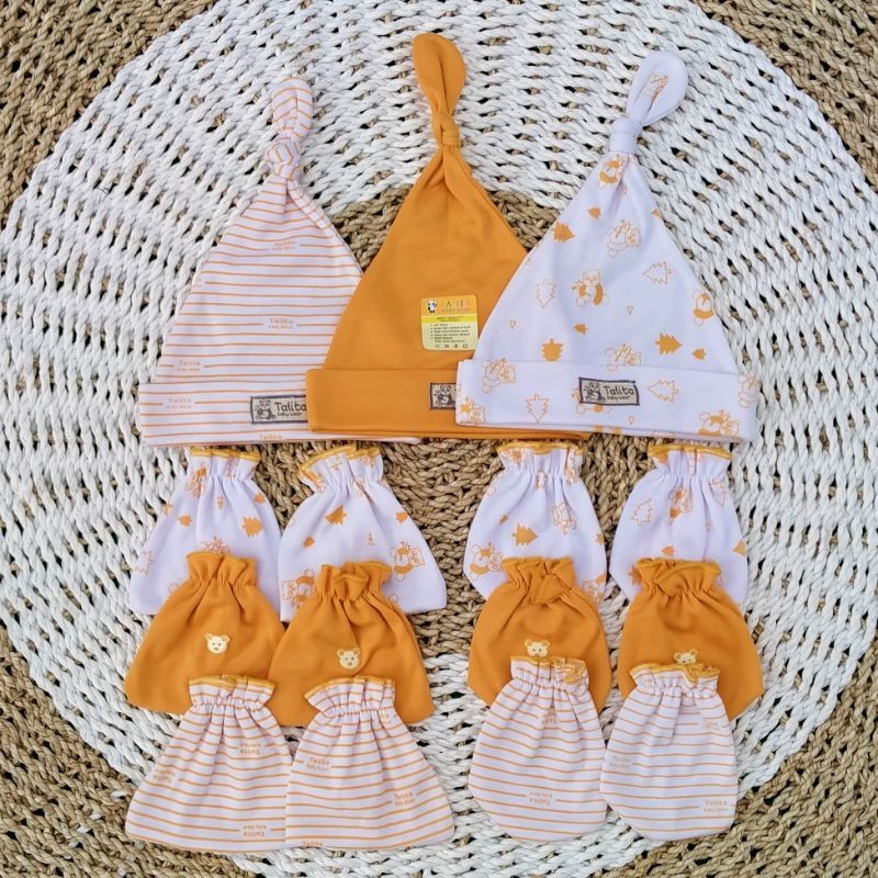 ISI 3 PCS Topi Dan 3 Set Sarung Tangan Kaki Bayi Baru Lahir Seri Warna Newborn Talitababywear