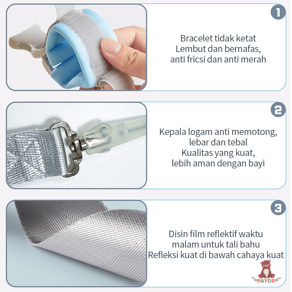 PAYOE 1.5-2.5 Meter Gelang Tali Pengaman Anak Bayi 2 In 1 Child Anti Lost Strap