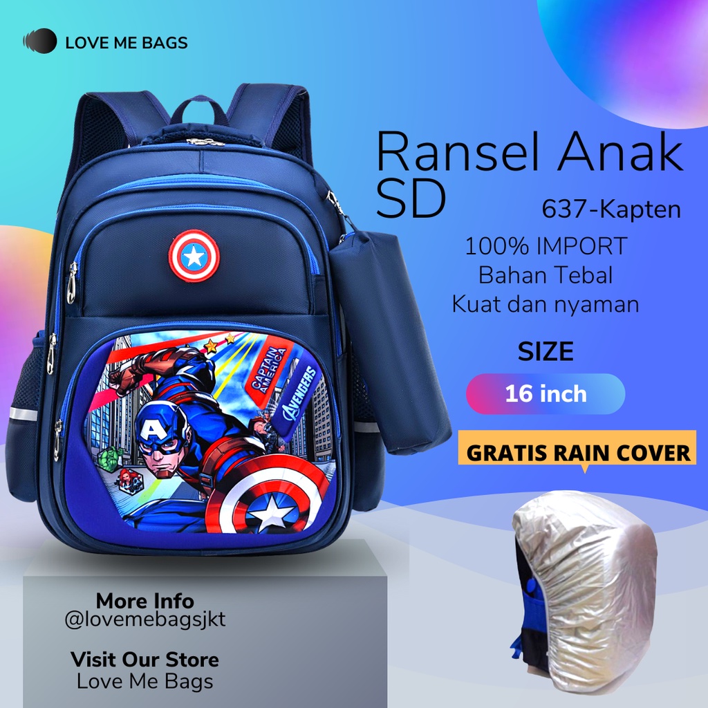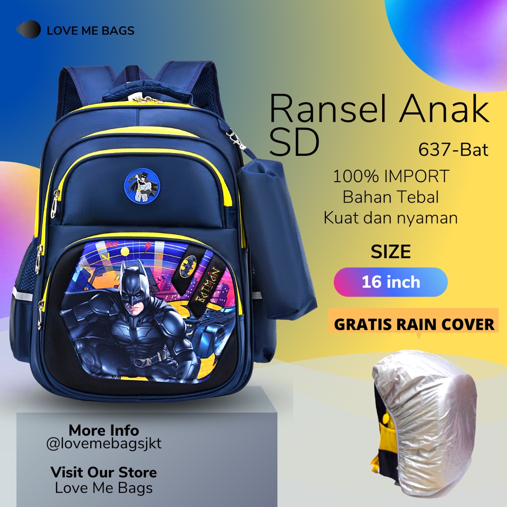 Lmb Tas Anak Laki Laki Sd Import Karakter Superhero Bagian Depan Timbul 6D Bahan Nilon Premium Tebal Dan Kuat