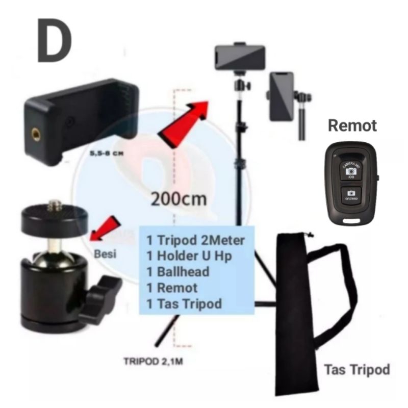 TRIPOD 2 METER TRIPOD HP CAMERA HOLDER U HP + BALLHEAD BESI