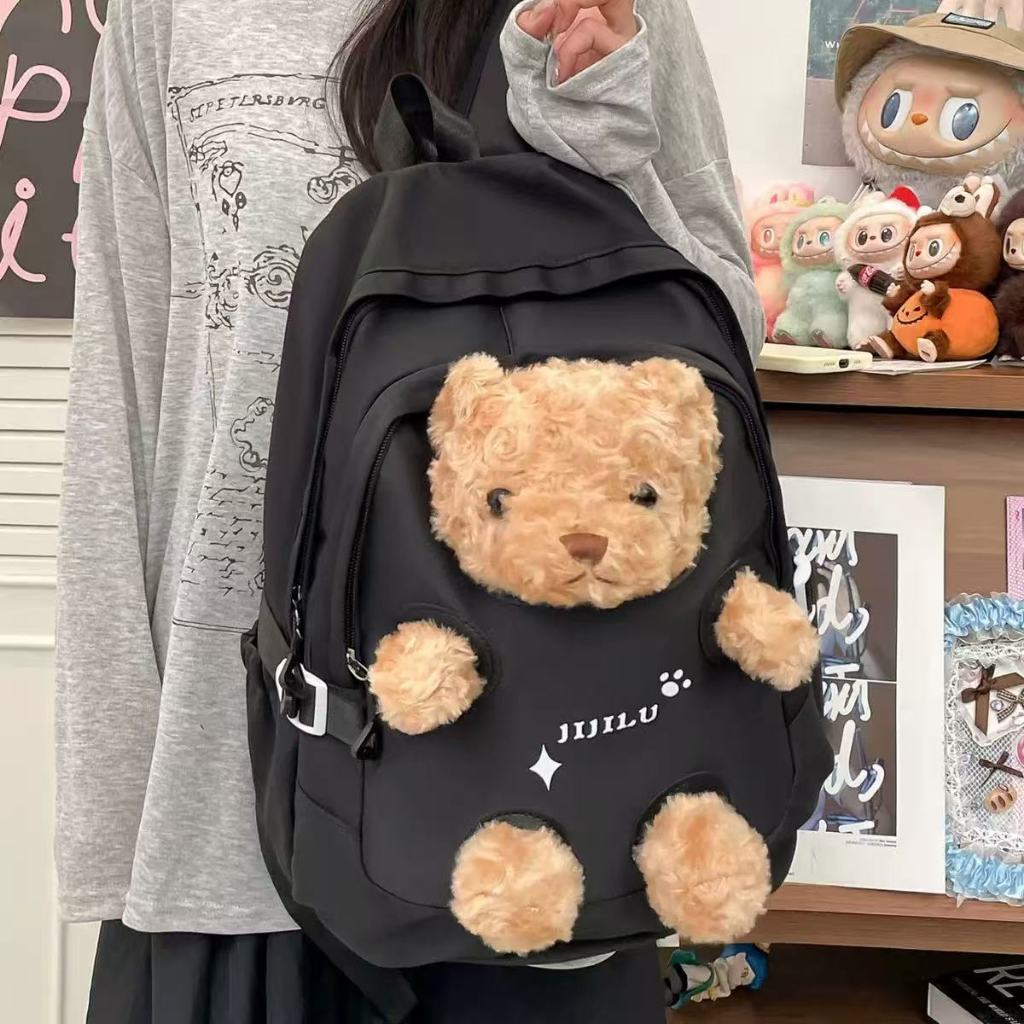 Onebear Model Baru Tas Ransel Ber Imut, Perempuan, Pelajar, Boneka Bulu Kartu Imut, Kapasitas Besar, Karakter Duffy Pere
