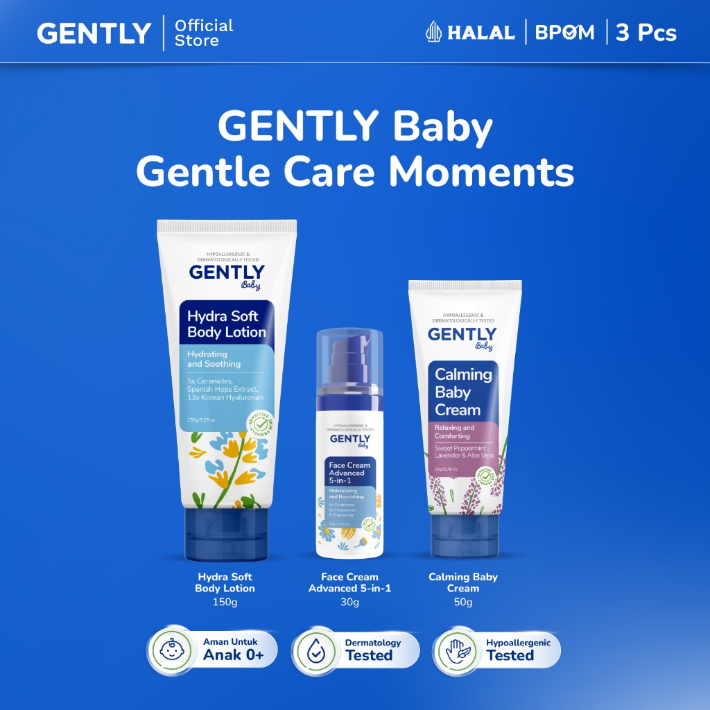 GENTLY Baby Gentle Care Moments | Paket Calming Baby Cream 50 g Krim Bayi Nyaman untuk si Kecil + Face Cream Advanced 5-in-1 30 g