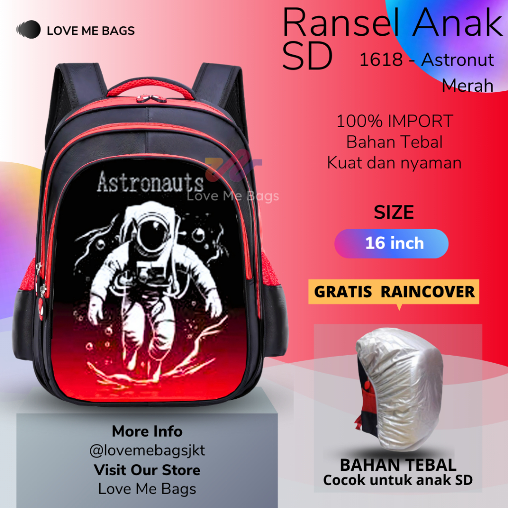 Lmb Tas Anak Laki Laki Sekolah Sd 16 Inch Import Karakter Lucu Astronot Bahan Nilon Premium Tebal Bagian Depan Timbul 6D