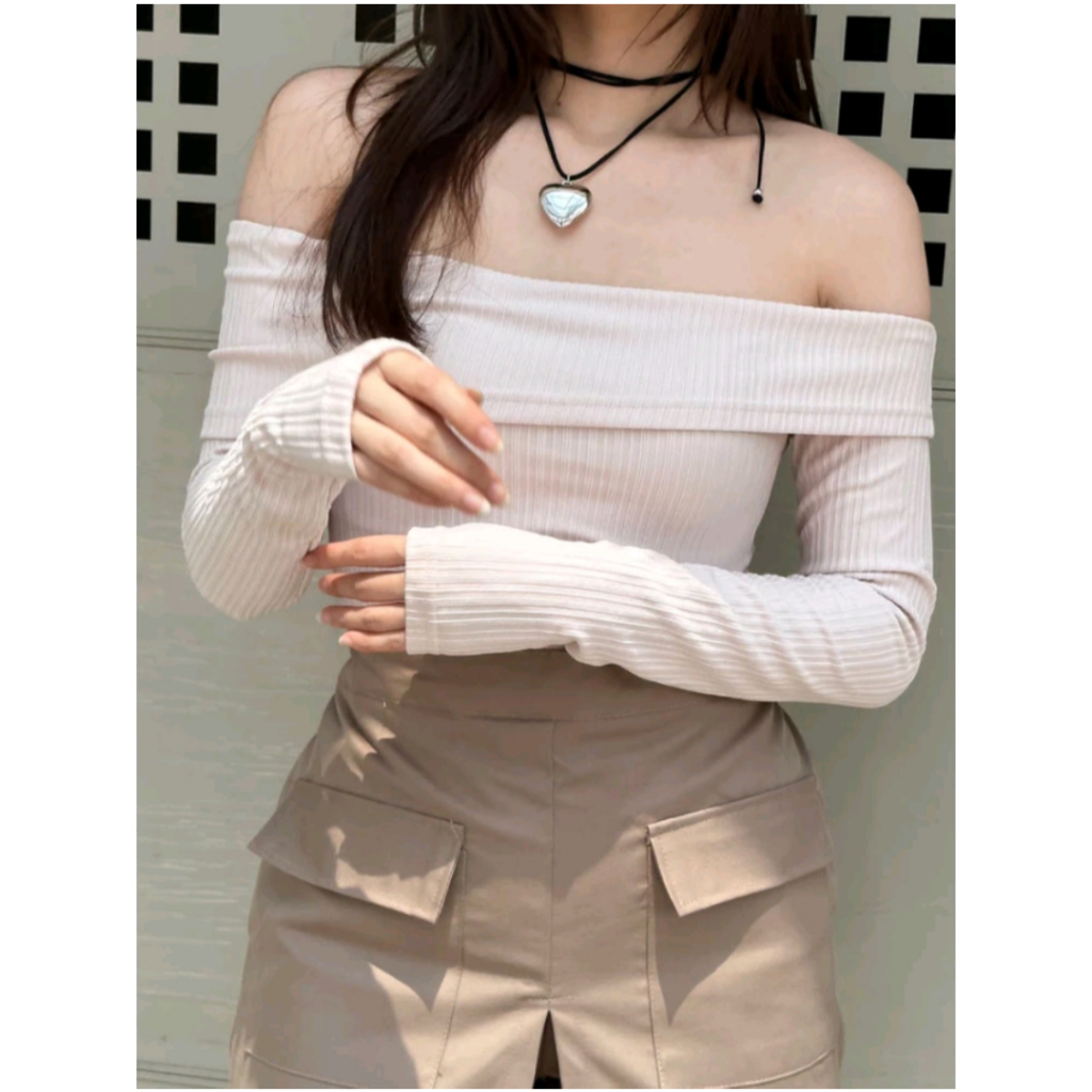 Sabrina Rib Top | Baju Atasan Wanita Terbaru Crop Top Lengan Panjang - Baju Wanita Kekinian - Outfit Wanita Kekinian - B