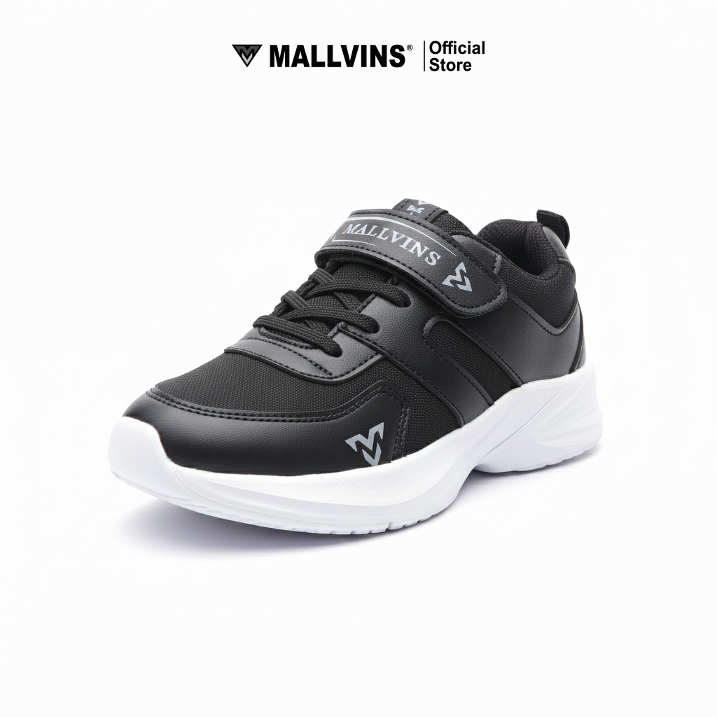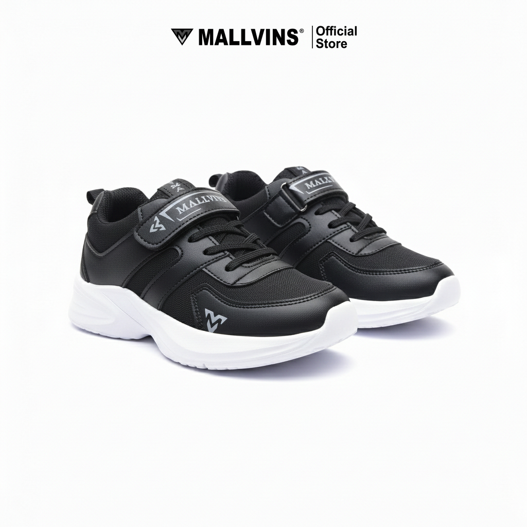 Mallvins - Gaza Black White - Sepatu Sekolah Sneakers Casual Anak Unisex