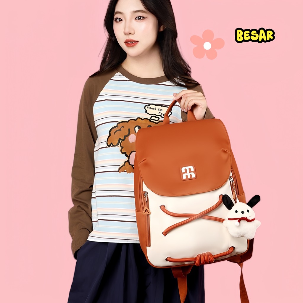 Mikilock Tas Ransel Wanita Korea Import Volume Besar Ins Tas Sekolah Kanvas Siswa Perempuan Kapasitas Besar Tas Laptop W