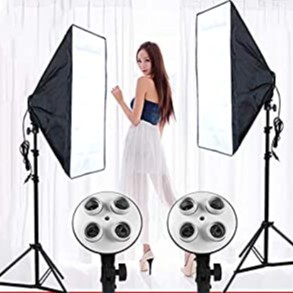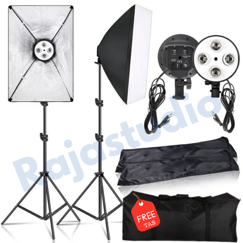 Paket 2 SET Lampu Studio Video Softbox Foto Studio 4 Socket E27 + Light Stand Reflektor