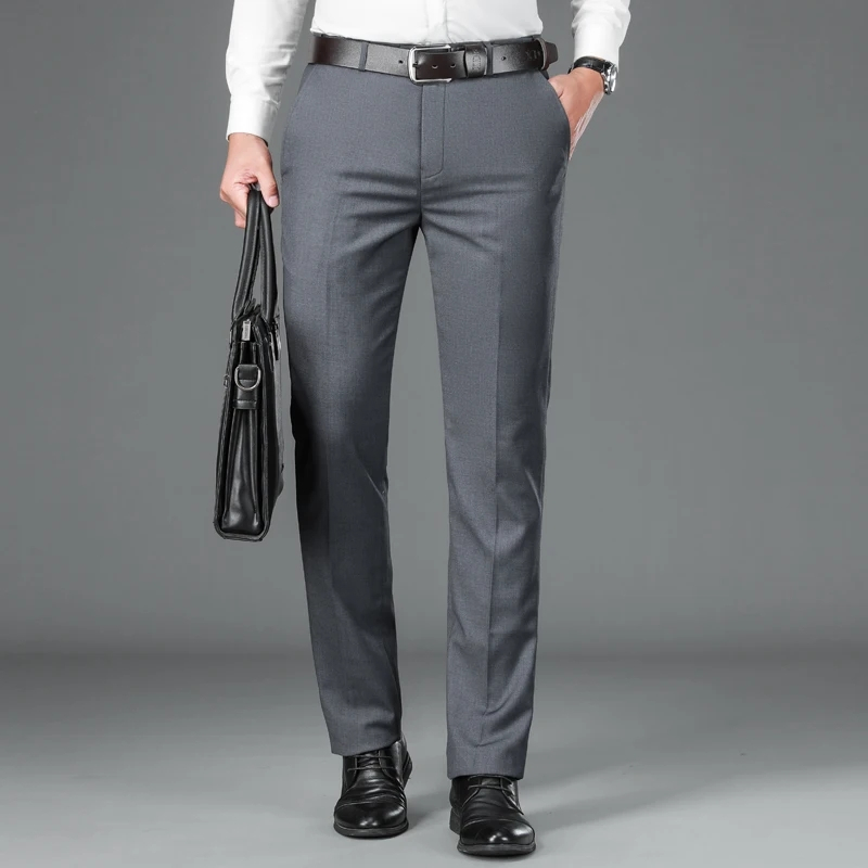 Celana Kantor Formal Pria Slim Fit Bahan Wool Premium Hitam Abu Panjang Size 27-38