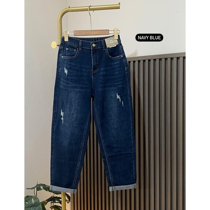 BKK GISELLEE MOMS STRETCH JEANS IMPORT BANGKOK BOYFRIEND PANJANG MELAR DARK NAVY CELANA SOFT - NAVY BLUE, M 28-29