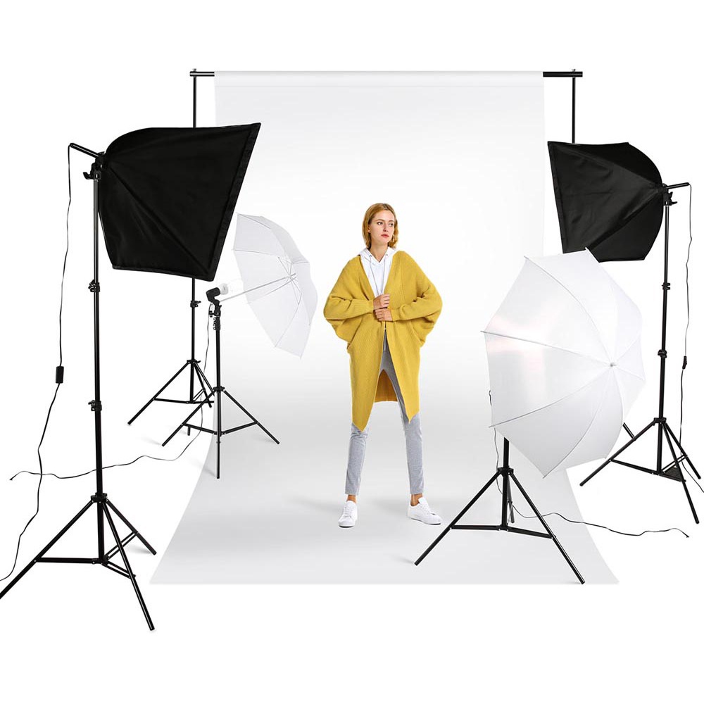 Paket Lighting Studio Foto Pro Softbox Lampu Umbrella Background stand